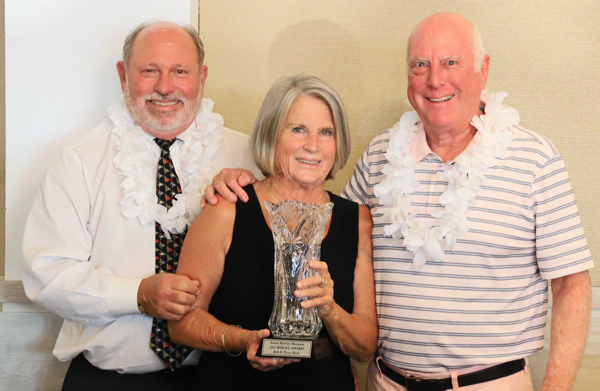 Bob & Josee Rich receiving the Risley Award from Bob Ashman, Stone Harbor Museum Trustee.