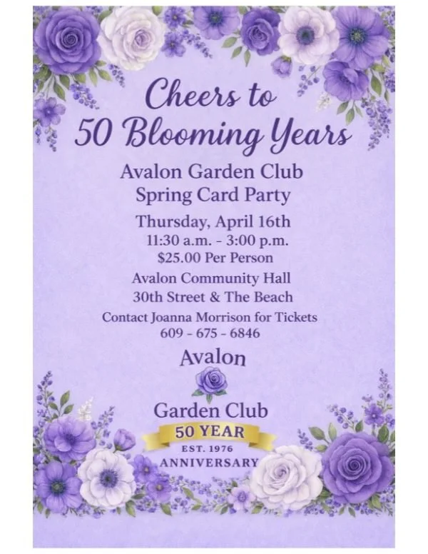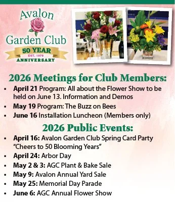 For decades, the streets and parks of Avalon have been colorfully brightened by dazzling flower displays thanks to the talented members of the Avalon Garden Club. 2026 marks a momentous year for the Avalon Garden Club, as the passionate group of flower lovers embarks on its 50th year of beautifying the Borough of Avalon.